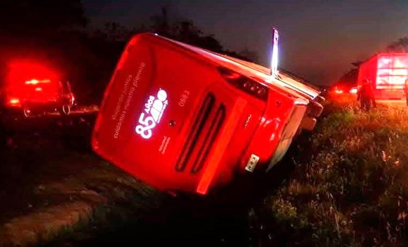 A las 05:35 horas, los operadores de la línea de emergencias 911 reportaron una volcadura del ADO marca Volvo número económico 0883 que circulaba rumbo al sur de Veracruz, con medio cupo.