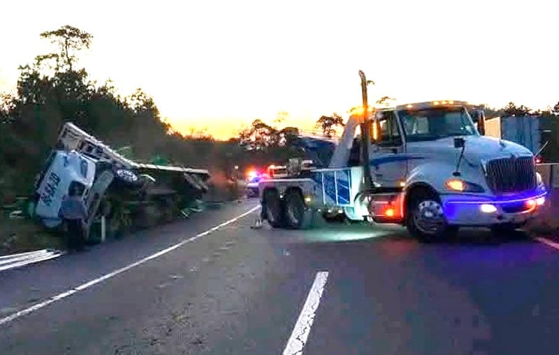 Con grúa, el camión de una empresa avícola fue remolcado al corralón de la jurisdicción, sin que se conozca la causa del accidente.