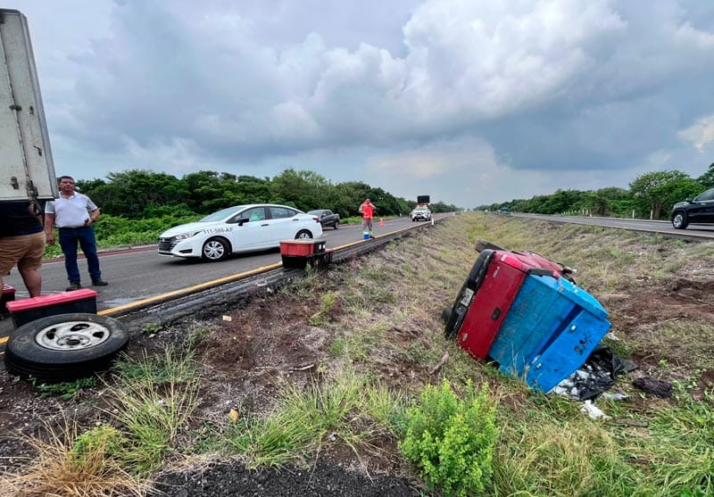 Los hechos ocurrieron a la altura del kilómetro 95, a escasos metros del distribuidor Cabeza Olmeca en este municipio de Veracruz, cuando una camioneta Ford F150 de color rojo, que transportaba varias taras de camarón congelado, se desplazaba rumbo a la caseta de Paso del Toro.