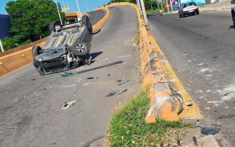 Una camioneta Kia Seltos volcó la mañana del sábado en el distribuidor vial de Plaza El Dorado en el municipio de Boca del Río, no se reportaron heridos, pero los daños materiales son cuantiosos.