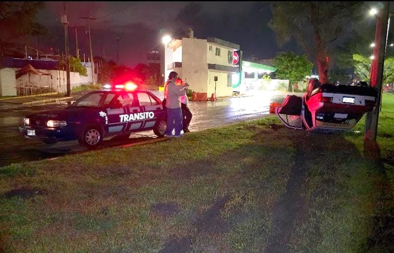 El vehículo, marca Nissan, tipo Tsuru, se subió al camellón y, tras recorrer varios metros, terminó volcado con las llantas hacia arriba.