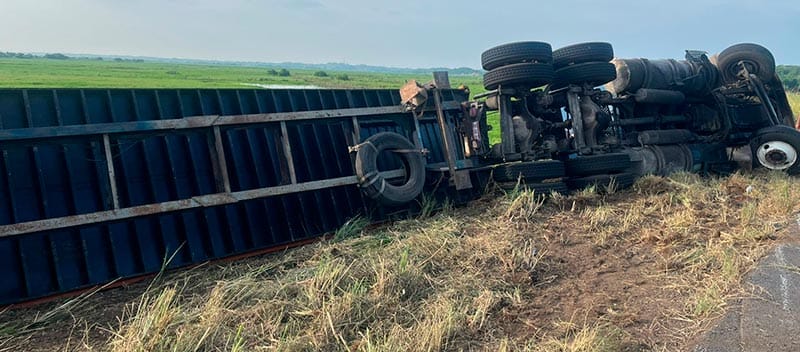 Acudieron paramédicos de SIEM de Lerdo de Tejada y constataron que el tractocamión color azul, con placas 99-BD-6F del servicio público federal, estaba fuera del camino, volcado sobre costado izquierdo.