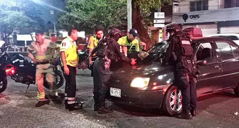 El motorizado, tras el fuerte choque, quedó sobre el cofre y parabrisas del automóvil, por lo que testigos presenciales y el compañero policiaco del afectado solicitaron ayuda a través del 911.