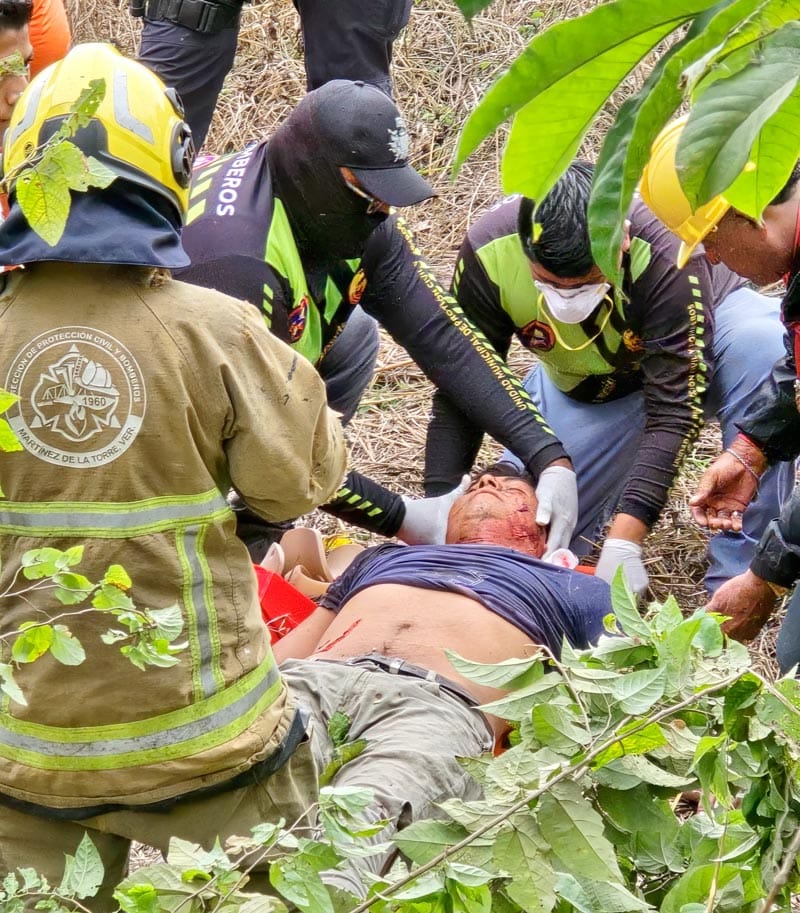 Tras ser estabilizado, el hombre fue colocado en camilla y trasladado de urgencia al Hospital IMSS-Bienestar, donde quedó internado bajo observación médica debido a la gravedad de su estado.