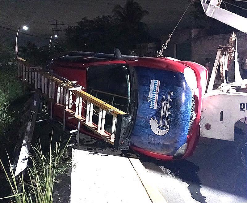 Ello provocó que perdiera el control, se saliera del camino y volcara sobre su costado derecho en un canal de aguas negras.