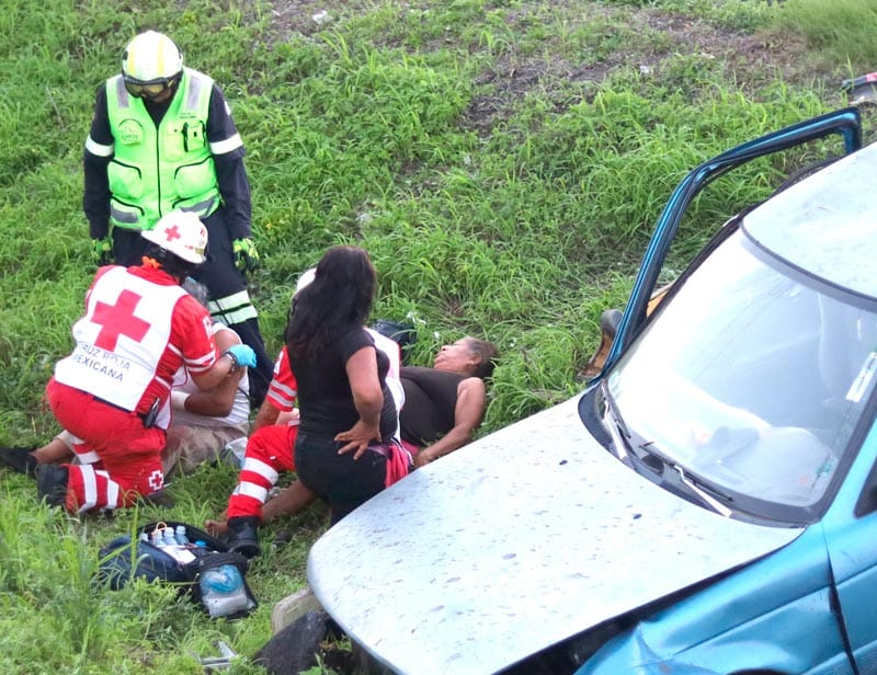 En la autopista Veracruz–Córdoba, hubo un aparatoso accidente de un carro compacto, tipo Tsuru, al reventarse una llanta y volcarse, quedando sobre la cuneta y sus cinco ocupantes lesionados.