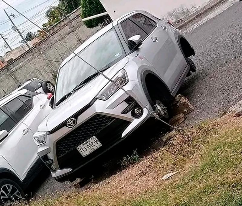 A través de redes sociales, se dijo que menos tres casos, los ladrones dejaron sin las cuatro llantas y los automóviles sobre ladrillos o madera.