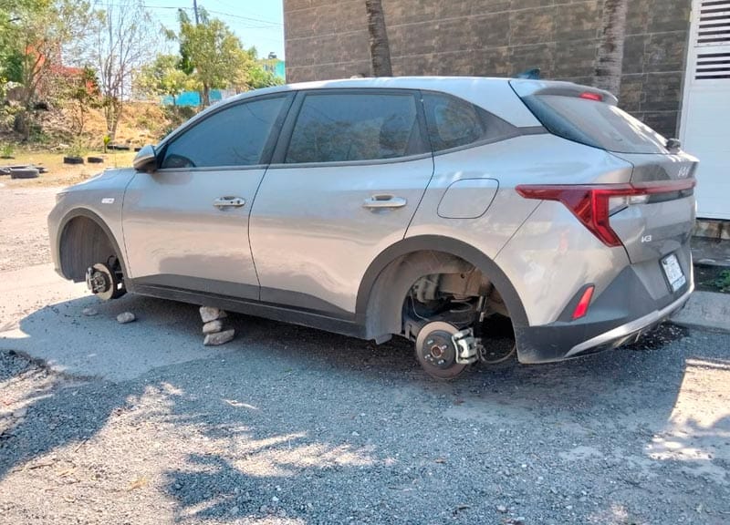 Los vecinos dieron a conocer que dos automóviles y una camioneta amanecieron sostenidos con piedras y blocks, luego de que delincuentes se llevaran las cuatro llantas de cada unidad.