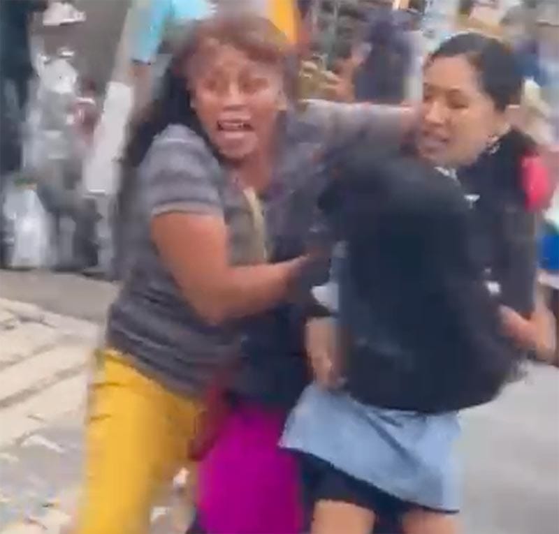 En la grabación también se ve cómo el tráfico es detenido mientras las mujeres se empujan y disputan a la menor.