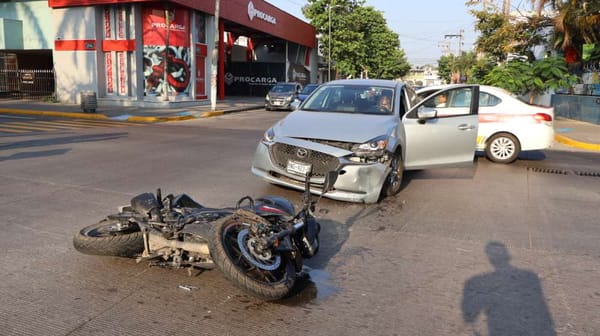 Un motociclista de aproximadamente 30 años resultó lesionado luego de chocar contra un vehículo Mazda en la esquina de Salvador Díaz Mirón y Francisco Javier Mina, en la Colonia Centro de esta ciudad.